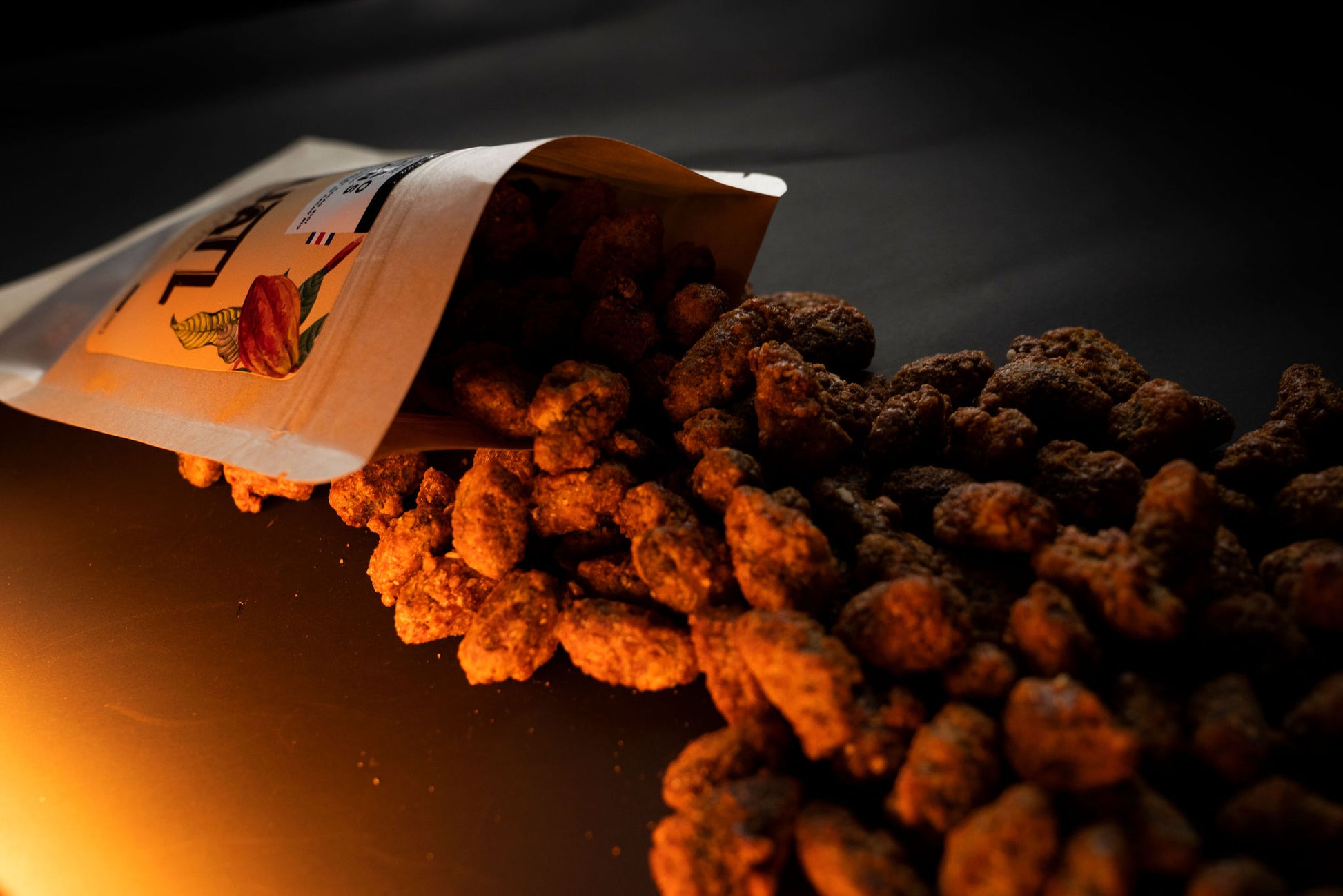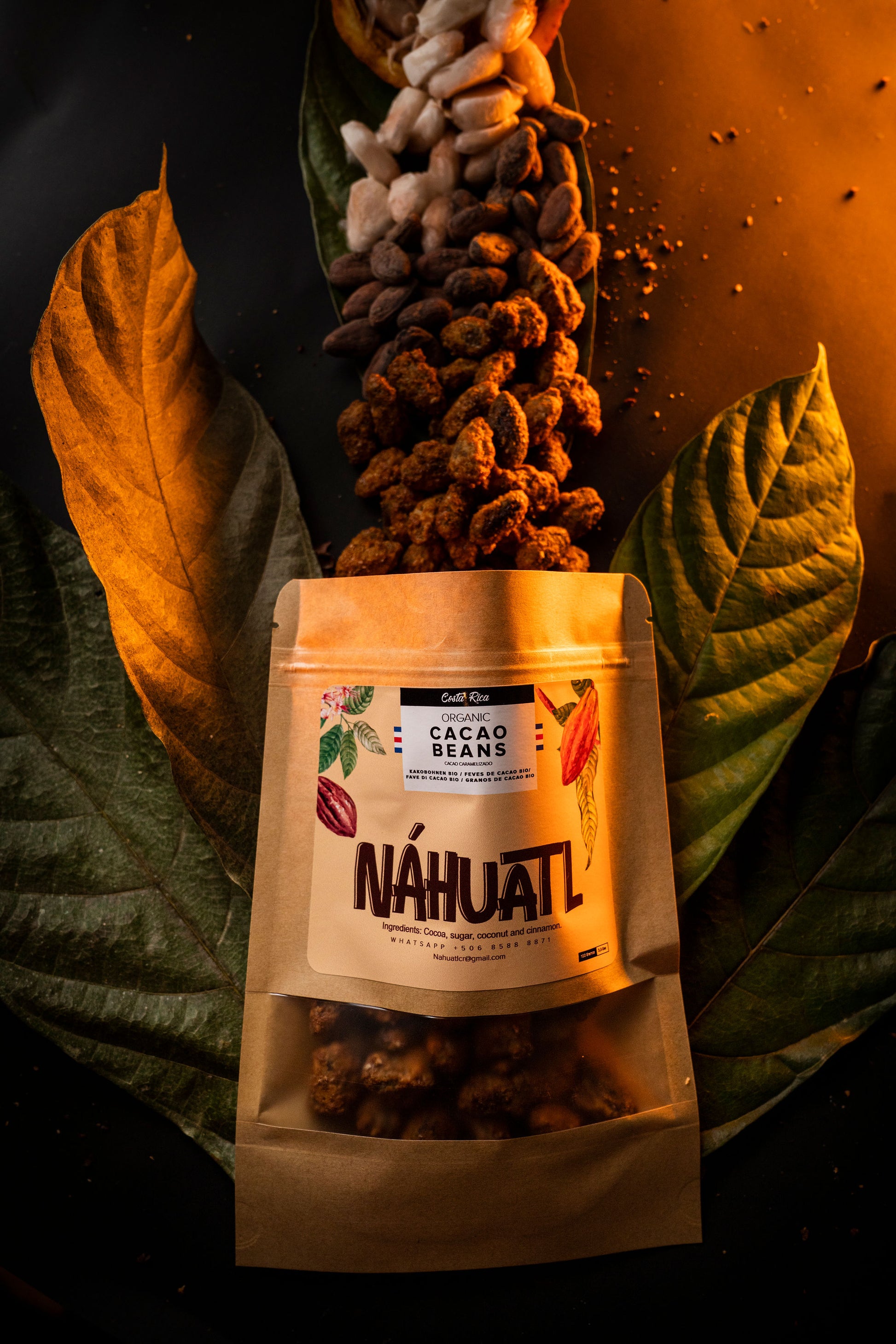 100 gr bags. Unique and delicious cocoa beans caramelized with real sugar, coconut and cinnamon. It perfectly combines the bitter taste of the cocoa beans with the sweet taste of the sugar that makes it really delicious for our palate.